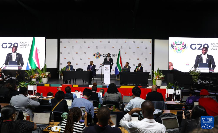 南非国际关系与合作部长罗纳德·拉莫拉11月22日在南非约翰内斯堡举行新闻发布会。图:新华社约翰内斯堡11月22日电(白谷静博文记者)第二十届二十国集团(G20)峰会22日在南非约翰内斯堡开幕。南非国际关系与合作部长拉莫拉在下午举行的新闻发布会上表示,会议各方就会议核心议程达成一致,并通过了二十国集团领导人约翰内斯堡峰会宣言。这是G20峰会开幕当天首次通过联合声明。会议前夕,美国驻南非大使馆致函南非政府,重申美国不会参加此次峰会,并反对在未经美国同意的情况下“公布任何G20最终共识文件”。美国。南非政府立即宣称,美国抵制峰会已经失去了“话语权”,南非不会屈服于美国的胁迫。领导人宣言共122点,强调多边合作应对全球挑战,呼吁加大支持发展中国家促进包容性增长和可持续发展。南非总统发言人穆格文亚在接受新华社采访时表示,宣言的顺利通过表明各国正在采取实际行动加强合作、支持多边主义。他强调,世界是一个休戚与共的大家庭,任何国家都无法独自实现自己的发展目标。坚持多边主义。 11月22日,南非国际关系与合作部长罗纳德·拉莫拉在南非约翰内斯堡举行的新闻发布会上发表讲话。Xinh 摄ua通讯社 陈薇 美国将成为下一个担任G20轮值主席国的国家。据此前媒体报道,美国原计划仅派驻南非大使馆副总理出席轮值总统制下的交接仪式,但遭到南非政府拒绝。姆格文亚表示,南非“无法接受”该协议。当被问及与美国的轮值主席国协议时,拉莫拉部长表示,南非之所以无法出席此次峰会,是因为美国按照外交惯例没有派出重要级别的代表参加会议。会议指出,8月份将不举行轮值主席国交接仪式。他强调,美国作为G20成员,应该有国家元首和部长出席峰会。拉莫拉表示,南非始终保持开放、包容的态度。态度友好,仍愿意与美国合作。交接仪式将在峰会结束后在南非国际关系与合作部或应美国要求在南非其他合适地点举行。